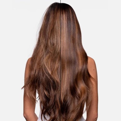 Aplicar una dosis de sérum en las manos y distribuirlo por los largos y puntas del cabello seco o húmedo.