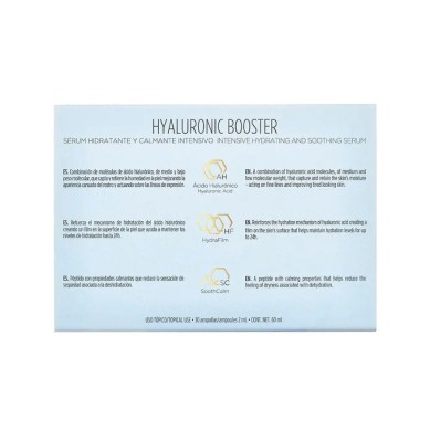 Solución facial en ampollas con una avanzada combinación de dos moléculas de ácido hialurónico, de medio y bajo peso molecular, que ayudan a la piel a recuperar sus niveles de hidratación para conseguir una piel radiante.