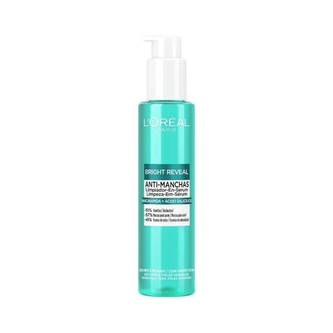 El Limpiador en Serum Anti-Manchas de L'Oréal Paris Bright Reveal está formulado con niacinamida y ácido salicílico.